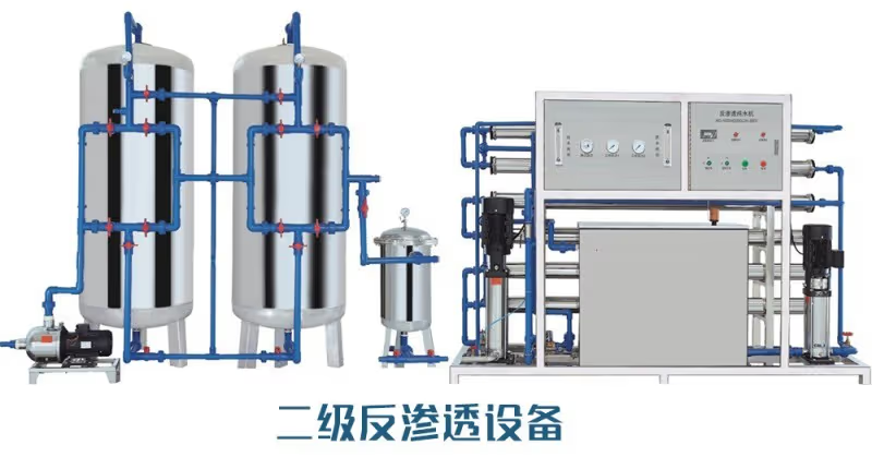 二级RO:进一步处理一级RO产水,提高水质,将产水电导率降至≤5us/cm。
